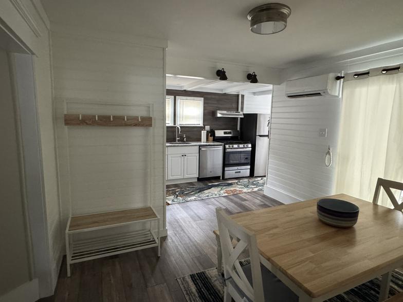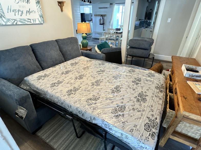 611 2nd Street is Your Coastal Getaway and it Starts Here!! – Stylish, Sunny & Just Steps to It All! Welcome to the perfect beach retreat — this charming 2-bedroom, 1-bath first-floor condo is packed with comfort and coastal character. The main bedroom has a queen and the second bedroom and bunk beds, offering double sized beds on the top and bottom bunks. There is a pull out sofa bed in the main space that sleeps two. Thoughtfully updated throughout, it offers easy living just minutes from the sand, shops, and shore favorites. Inside, you’ll love the bright and breezy open layout, wood-look floors, and a fully updated kitchen with granite counters, stainless appliances, and a rustic-modern backsplash. The cozy living room flows into two inviting bedrooms, including a fun bunk setup for guests or little ones. Enjoy your morning coffee or evening cocktails on the covered front porch, and take advantage of the shaded rear patio perfect for dining al fresco. Additional perks include common laundry, extra storage, and a prime location in the heart of town. No Pets Permitted means the tenant is not permitted to bring pets.